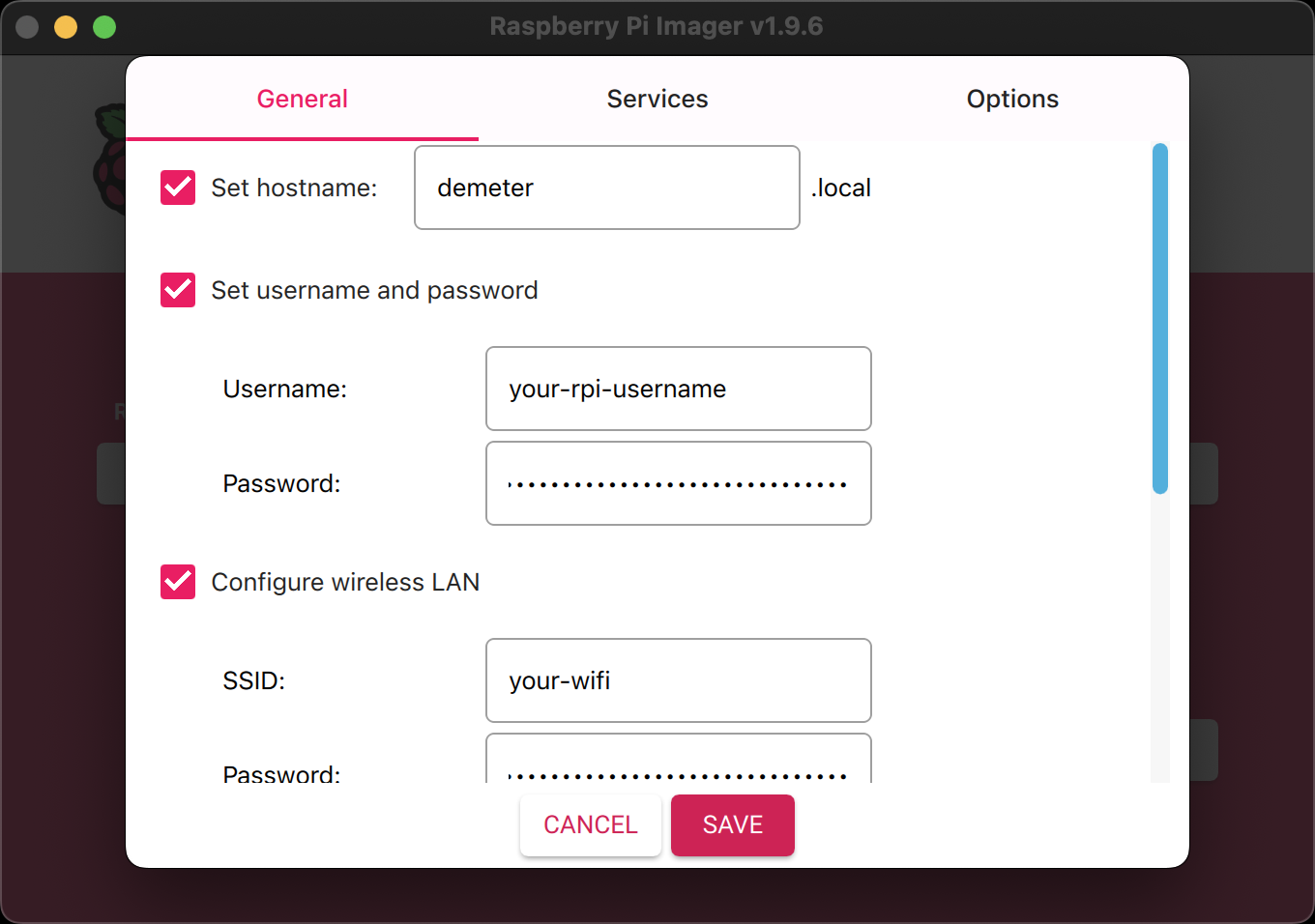 The Imager allows you to preconfigure Wi-Fi credentials and create a root user account. If you plan to push source code to your Raspberry Pi over the local network, it's a good idea to assign a static IP address to the Raspberry Pi in your router settings.