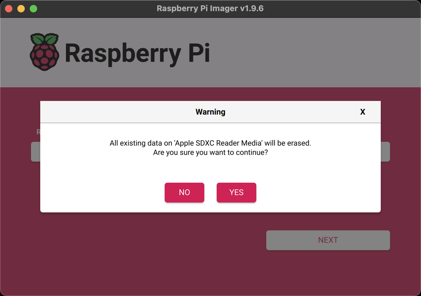 Click Yes to accept the MicroSD Card erasure.