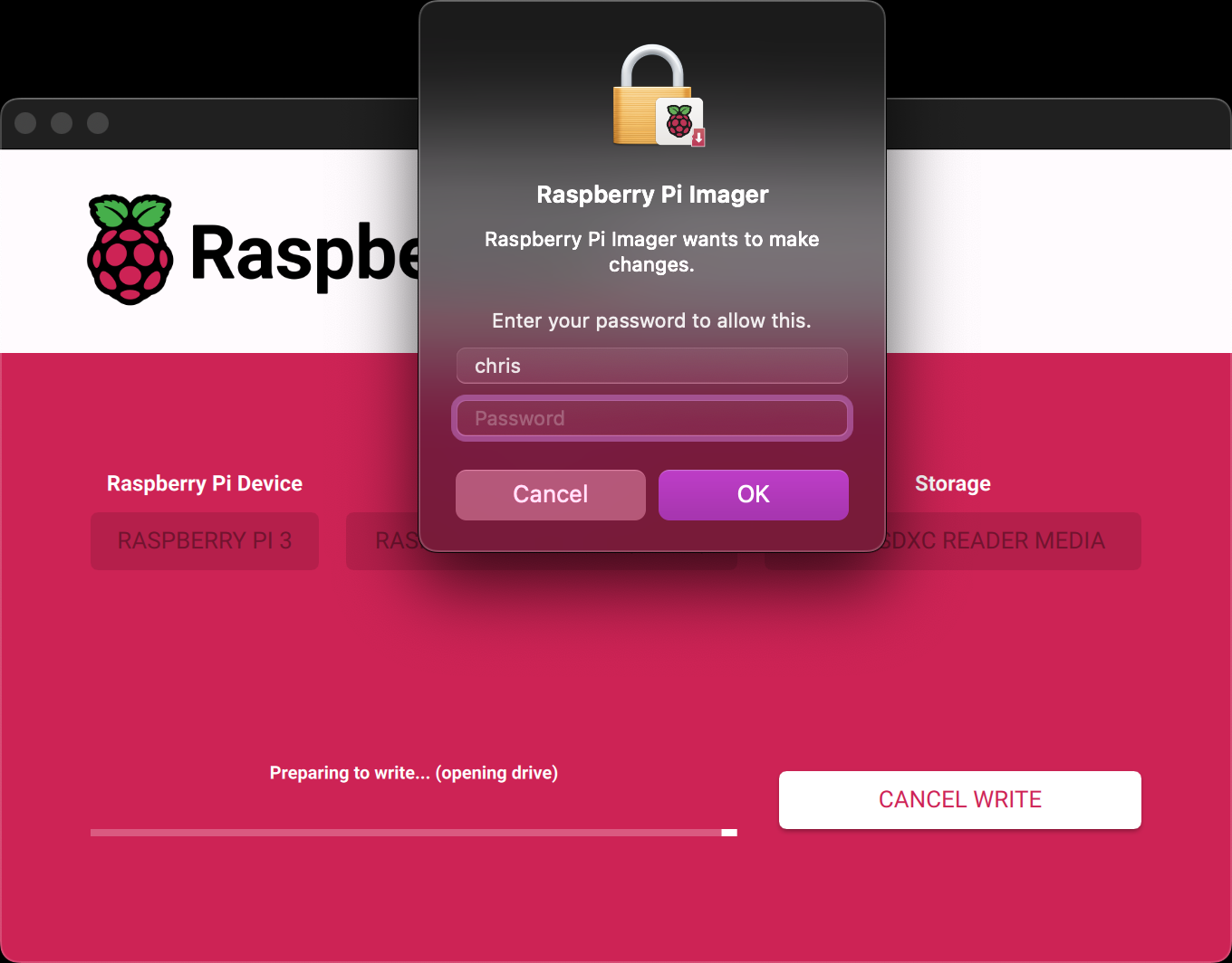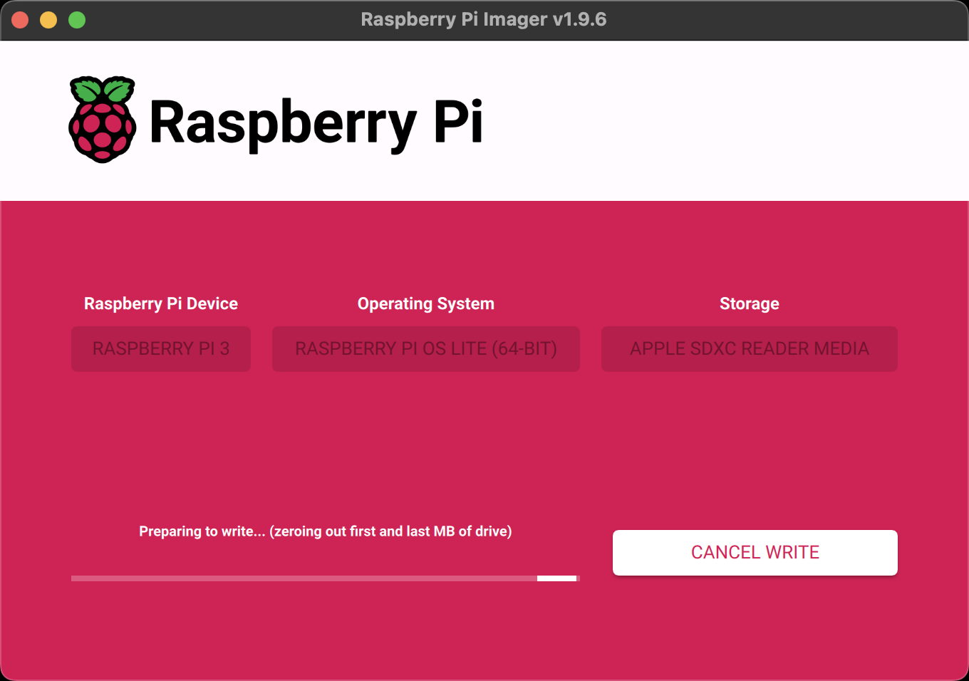 The application will download the chosen OS.
