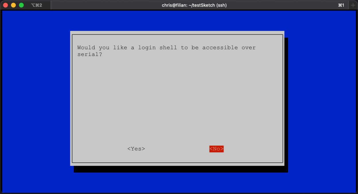Select No to login over serial.