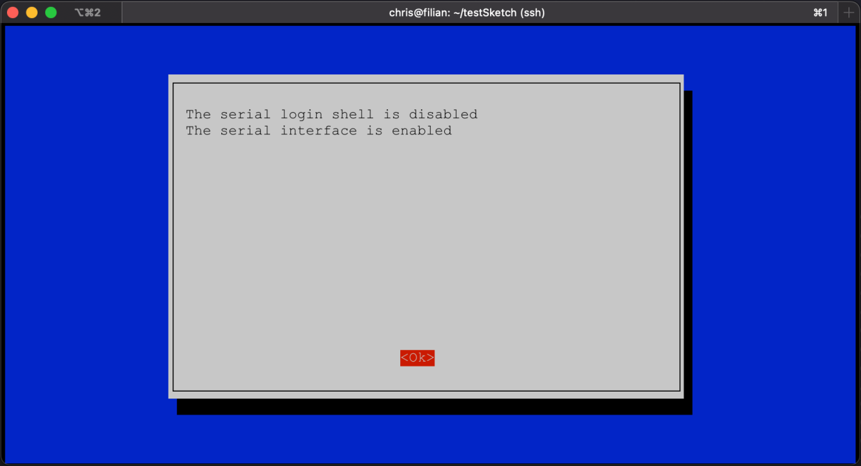 If ttyS0 is listed, the GPIO pins are configured and ready to be wired to the Arduino.