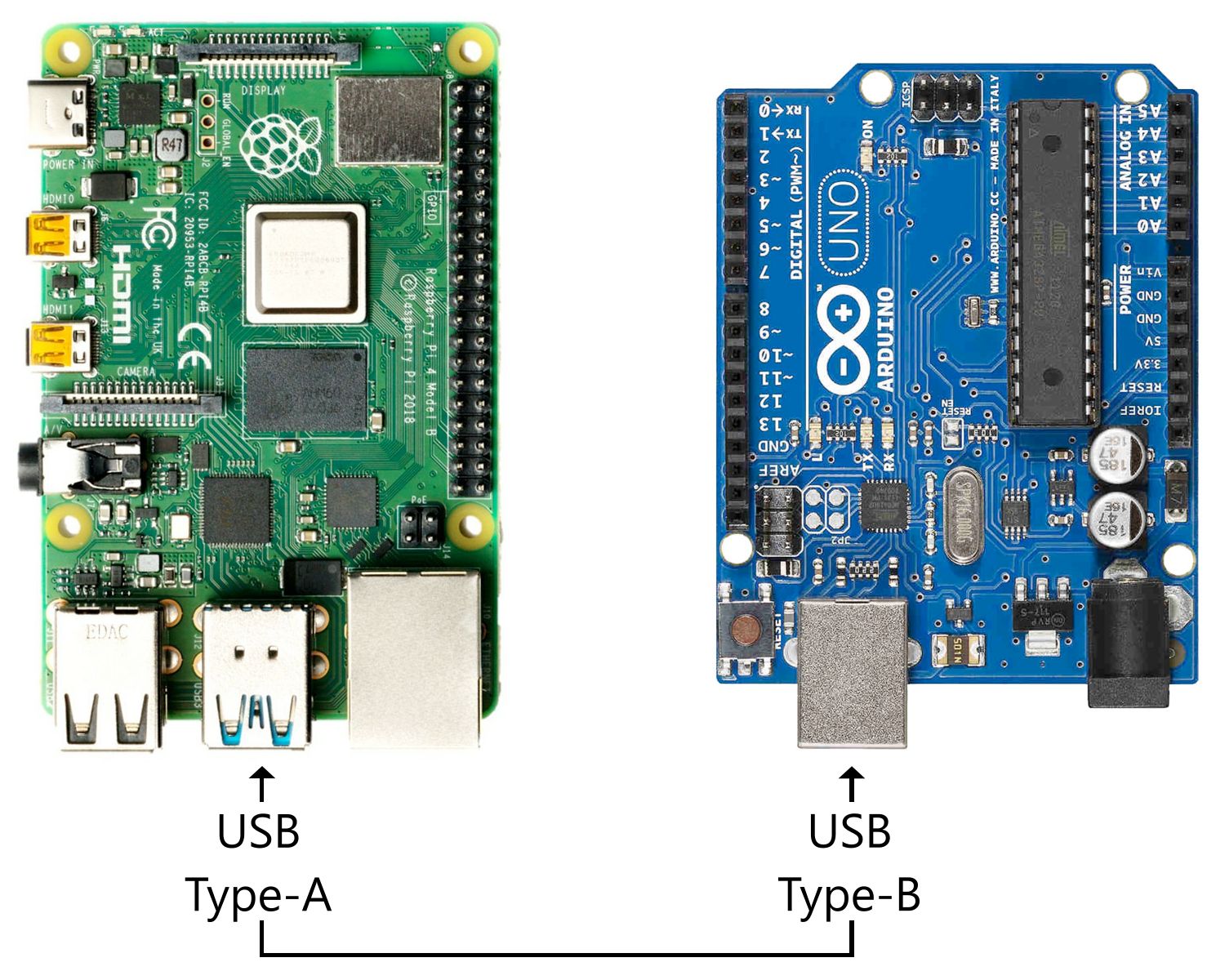 You can connect an Arduino to a Raspberry Pi in two ways: USB or via the GPIO pins. USB is the simplest and most reliable method, but if the Pi's USB ports are occupied or inaccessible, you can fall back on the GPIO pins with a bit of extra hardware and setup.